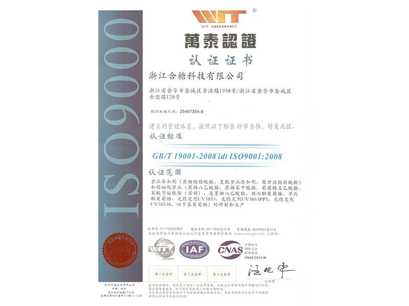 浙江合糖科技有限公司(原:浙江迪耳化工有限公司)成立于1996年,是一家集研發(fā)、生產(chǎn)、銷(xiāo)售為一體的國(guó)家高新技術(shù)企業(yè)和浙江省科技型中小企業(yè)。經(jīng)過(guò)二十多年的發(fā)展,公司順應(yīng)市場(chǎng)需求,生產(chǎn)和研發(fā)了糖類(lèi)衍生物,苦味劑,食品添加劑(蔗糖酯),精細(xì)化工品,復(fù)合乳化穩(wěn)定劑藥用輔料、化妝品添加劑等一系列有市場(chǎng)競(jìng)爭(zhēng)力的產(chǎn)品,公司專(zhuān)注于糖化學(xué)的生產(chǎn)與研發(fā)二十二載,可提供糖類(lèi)產(chǎn)品的定制合成服務(wù)。